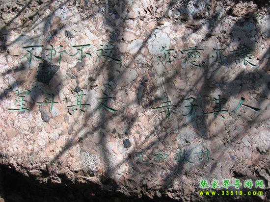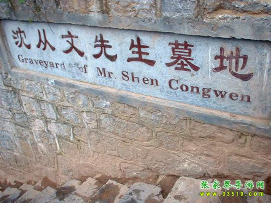 從古城的東門城樓外的虹橋前沿江下行3華里路程,到得聽濤山,從山道向右拾階而上,不遠處便能看見一塊石碑,上寫“沈從文墓地”5個遒勁大字。再不遠處置有一塊豎長的石碑,上面刻有畫家黃永玉為表叔沈從文題寫的碑文:“一個士兵不是戰(zhàn)死沙場,便是回到故鄉(xiāng)。”墓地建在一塊狹長的小草坪上,沒有墳冢,只樹有一塊6噸多重的天然五彩石,成為沈從文墓獨特的標志。石正面鐫刻的是沈從文富有哲學內(nèi)涵的手跡:“照我思索,能理解我;照我思索,可認識人。”石背面是沈從文的姨妹、美國耶魯大學教授張充和撰書,沈從文侄女婿、中央美術學院著名雕塑家劉煥素教授鐫刻的挽聯(lián):“不折不從,星斗其文;亦慈亦讓,赤子其人。”其聯(lián)句尾四字:“從文讓人”透射出先生一生的高風亮德。沈從文墓地清幽靜謐,四周綠樹環(huán)抱,墓地上和四周的草坪上擺放著無數(shù)的野花和竹編的一些蝴蝶,這些都是前來膜拜的旅人們留下的。
