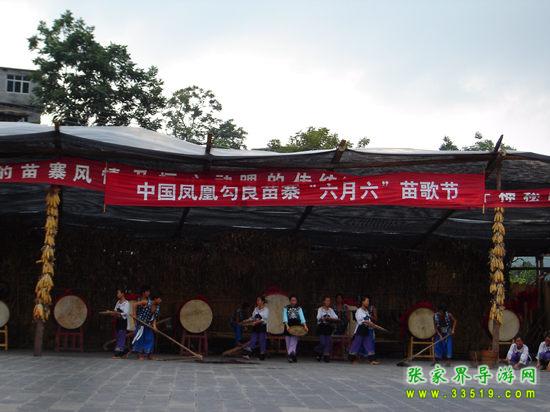 勾良苗寨位于歷史文化名城鳳凰的西北部落潮井鄉(xiāng)勾良村,距鳳凰古城29公里,是典型偏僻而原始的生紅苗部落,全寨分為上、中、下三個自然寨共有300多戶人家,1000多人口。由于其地理位置處于湘黔結(jié)合位上,中原漢文化與西南楚巫文化在這里碰撞整合,形成了一種獨特的文化現(xiàn)象,產(chǎn)生許多豐厚的民俗文化底蘊。勾良苗寨始建于唐垂拱三年(公元679年),至今已有一千三百年的歷史,素有“苗疆第一寨”之稱,它民俗風情濃郁、風景秀麗,有苗家巫術(shù)絕技表演、古妖潭瀑布群、茶龍洞瀑布等風景。