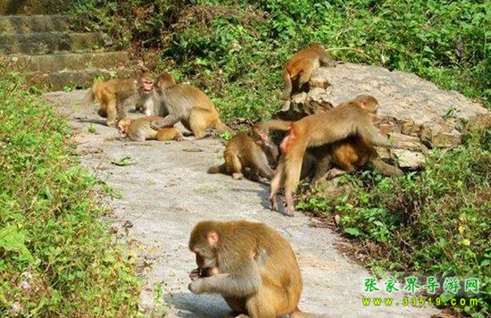 在十里畫廊盡頭。這里怪石嶙峋,林木蔥籠,常有三五成群成百上千只猴子在此會(huì)集,故稱猴子坡。