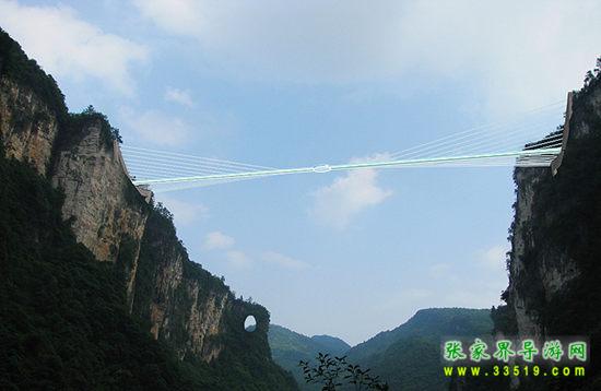 張家界大峽谷籌建的玻璃橋,位於湖南省的張家界大峽谷景區(qū)栗樹埡和吳王坡區(qū)域內,由設計上海世博會以色列館的世界著名設計師Haim Dotan設計,是世界上最高、跨度最長的玻璃橋。大橋建在大峽谷兩側的絕壁峰頂之上,橫跨整個大峽谷,橋拱距谷底的相對高度約400米,橋寬3.2米,橋長約370米,橋面全部采用透明玻璃鋪設,整個工程無鋼筋及混凝土墩支撐,為全玻璃架構,斜拉索[2]則計劃采用目前世界最新型的復合材料,橋中心設有全球最高蹦極臺。站在橋上,腳下400米處的谷底全景盡收眼中。