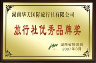 我們是您的最佳選擇! 值得信賴。 另: 1、2009年經(jīng)省旅游局和省世博辦推薦,華天國旅成為上海世博會團隊票合作銷售“湖南省唯一指定旅行社”。 2、最新評定:華天國旅為 湖南五大地接社之一 (2010年4月22日) 3、最新評定:華天國旅為:湖南五星級旅行社 (2010年5月10日)