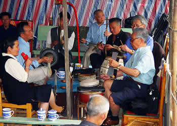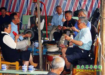圍鼓(含嗩吶)。又稱打鎦子、打排鼓,是民間紅白會(huì)中不可缺少的樂器。一般7人演奏,樂器有一鼓、一大鑼、一公鑼、兩副鈸、兩嗩吶。其詞曲紅白會(huì)通用,以鼓和嗩吶上系紅、白布為分別標(biāo)記(結(jié)婚不打四字鈸曲)。史傳的圍鼓詞有《撩子》、《火鋪》等,《撩子》分《一二三》、《閃翅》、《堆羅漢》、《反落花》等十章,《火鋪》也分《三槍》、《四進(jìn)門》、《八哥洗澡》、《蓮魚吐絲》等十章,嗩吶詞有《八十正宮》調(diào)等。在農(nóng)村,圍鼓是最普及的樂器,每逢紅白喜事都有圍鼓和嗩吶表演。