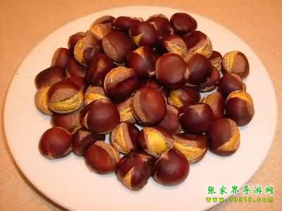 板栗與尖栗(俗名“漩栗”),山毛櫸科,是木本植物,主要含淀粉、糖等,在武陵源區(qū)各景區(qū)都有廣泛的分布。它們是多年生落葉喬木,一般樹高3至5米到10米左右。栗樹春末夏初開花,夏天生長(zhǎng),秋天結(jié)實(shí)。果實(shí)成球形,外殼帶刺,里面栗子光滑成紫色,所以農(nóng)家有“娘被千針衫,兒穿紫龍袍”的謎語(yǔ)。板栗成熟以后,外殼便自然張開,栗子隨風(fēng)脫落。如在板栗林里撿栗子,倒是一大樂(lè)趣。“白露”過(guò)后,板栗大量成熟,滿樹的栗球都張開了笑口,一遇到颯颯吹來(lái),栗子便唏唏唰唰唰隨風(fēng)脫落,滾進(jìn)山溝里或低洼處,如果運(yùn)氣好,可以撿到一窩一窩的板栗,有時(shí)可以撿幾十斤。