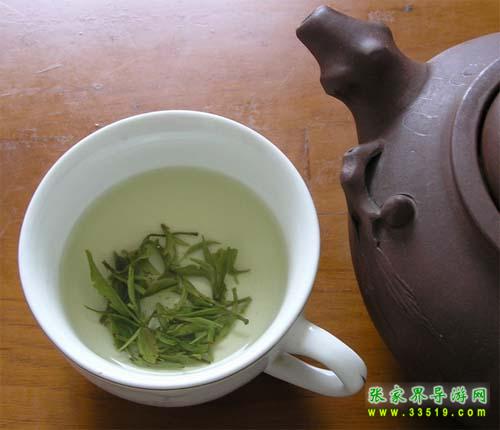 武陵源風(fēng)景區(qū)盛產(chǎn)香茶,著名的有“青巖茗翠”、“龍蝦花茶”、“黃石寨云霧茶”、“天崇毛尖”與“索溪毛尖”等。通過(guò)1982年評(píng)比,“青巖茗翠”獲部級(jí)金杯獎(jiǎng),同年又獲全國(guó)首屆食品博覽會(huì)銀獎(jiǎng)。“龍蝦花茶”也已列入全國(guó)名茶。人們經(jīng)過(guò)品嘗、評(píng)比,并經(jīng)茶葉專(zhuān)家鑒定,一致認(rèn)為“青巖茗翠”、“龍蝦花茶”等具有外形美觀(guān),內(nèi)質(zhì)優(yōu)良等特點(diǎn)。這種茶葉,從外形來(lái)看,條索緊結(jié),圓渾彎曲,苗鋒顯露,銀毫滿(mǎn)披,色澤翠綠,從內(nèi)質(zhì)來(lái)看,清香馥郁,味醇回甘,湯色綠明,葉底均勻,飲后爽神,具有熟板栗蘭花之奇香,飲后回味無(wú)窮。據(jù)考證,“青巖茗翠”屬高山云霧茶一類(lèi)。自古道:“高山出好水,云霧育佳茶”。黃石寨枇杷界海拔1000多米,氣候溫和,云霧繚繞,溫度適宜,因而,茶葉嫩度高,品質(zhì)好。這種獨(dú)特的環(huán)境為茶葉中的氨基酸,咖啡堿等有效成分的形成和增長(zhǎng),提供了優(yōu)越的生長(zhǎng)條件,而對(duì)質(zhì)地粗老的纖維素的形成,則又起到了抑制作用。還有,這些山峰上日照短,直射光少,漫射光多,晝夜溫差大,土質(zhì)的有機(jī)質(zhì)豐富,因而結(jié)構(gòu)疏松,排水又好。一切這些因素,都為茶葉的平穩(wěn)生長(zhǎng)創(chuàng)造了良好的條件。所以“青巖茗翠”茶,就博得了各地名家的一致好評(píng)。湖南省茶葉學(xué)會(huì)秘書(shū)長(zhǎng)、湖南農(nóng)學(xué)院副教授朱先明品了這種茶以后,賦詩(shī)贊美: