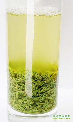 “天崇毛尖”的特點(diǎn)是:條索緊結(jié),圓渾彎曲,苗鋒顯露,披滿(mǎn)銀毫,色澤翠綠,清香濃郁,味清醇甘,葉底均勻,飲后有提神醒腦的功能。這種茶在制作時(shí)要經(jīng)過(guò)殺青、初揉、復(fù)炒、初烘、整形、攤涼、干果、包裝等八道工序?,F(xiàn)在,這種名茶已在永定區(qū)成批生產(chǎn),游人可以任意選購(gòu)。