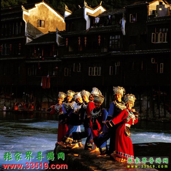 金鞭溪因流經(jīng)金鞭巖而得名,全長5710米,穿行于絕壁奇峰之間,溪谷有繁茂的植被,溪水四季清澈,被稱為“山水畫廊”、“人間仙境”。有詩贊曰:“清清流水青青山,山如畫屏人如仙,仙人若在畫中走,一步一望一重天”。途中你會看到點(diǎn)歌臺,那里有土家姑娘時(shí)刻準(zhǔn)備為游人唱民族歌曲,只要付十元錢她們就會為你引吭高歌,當(dāng)然,如果你不想花這個(gè)錢,也可以在一邊聽聽別人點(diǎn)的歌,聽完后走人。